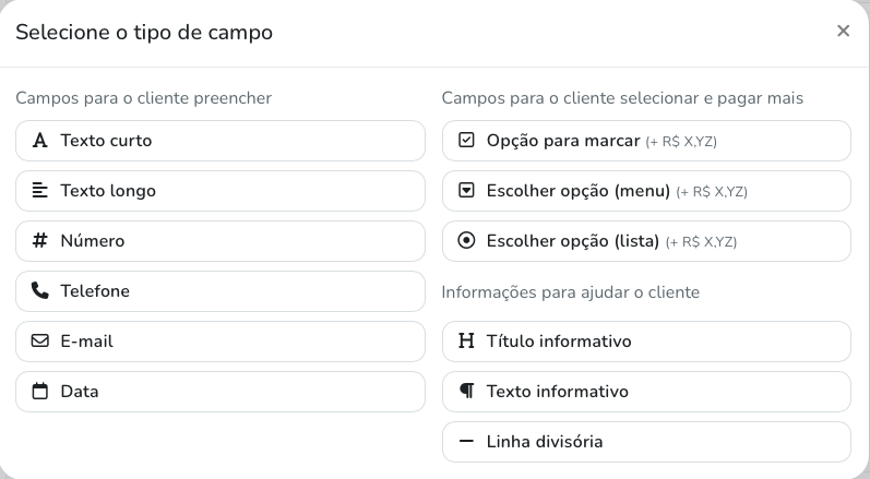 - Vá em Campos de personalizações e adicionais e clique em Adicionar campo.