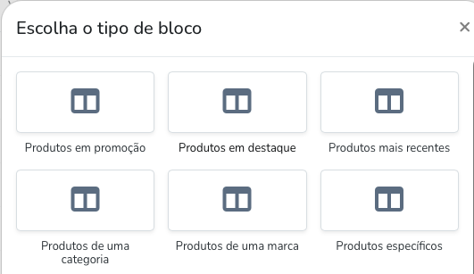 Após selecionar o bloco de produtos específicos, você poderá escolher manualmente até 12 produtos que deseja destacar na sua página inicial.